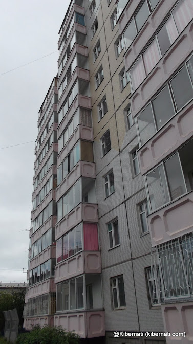 В некоторых рабочих районах города, преобладают дома в серых тонах, но изредка можно встретить и такое... Розовый балконы... Разбавили, так сказать, пейзаж.